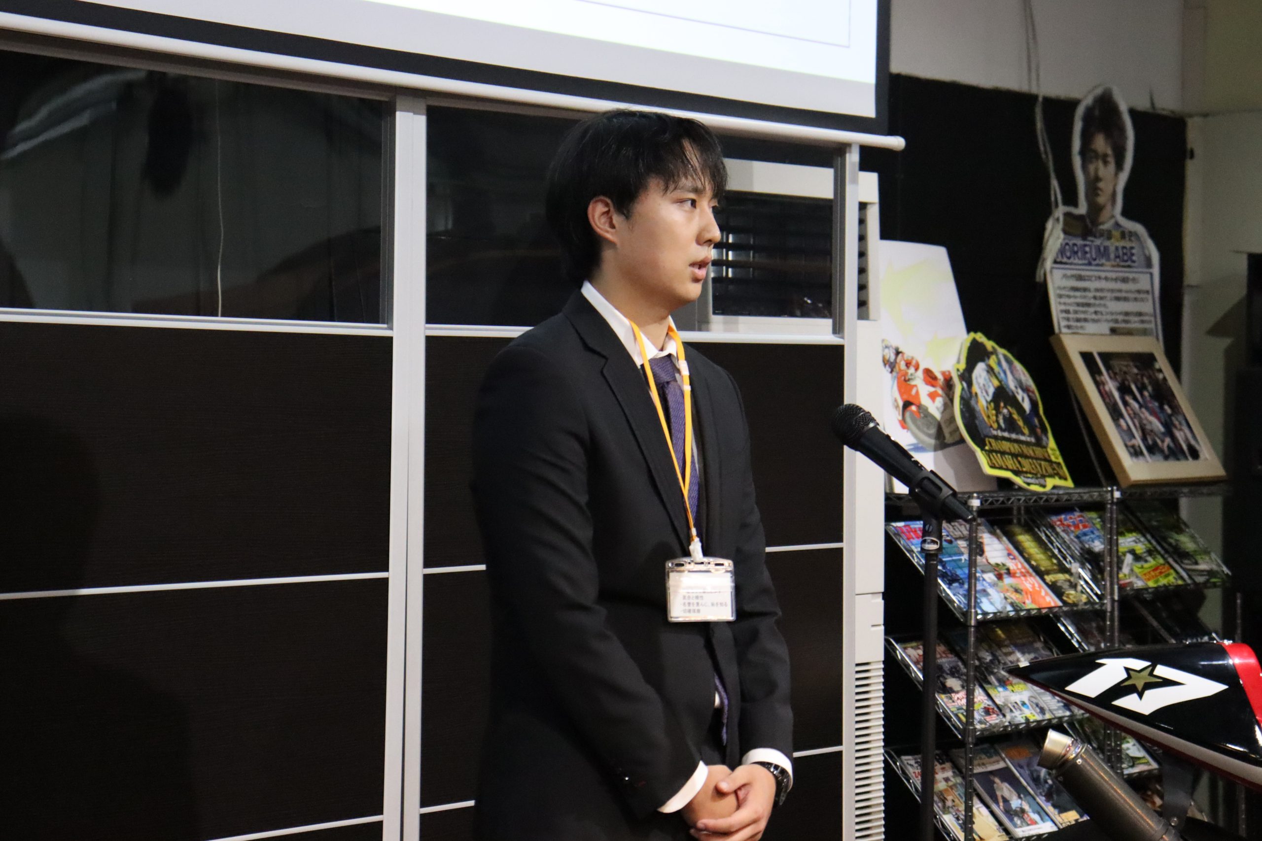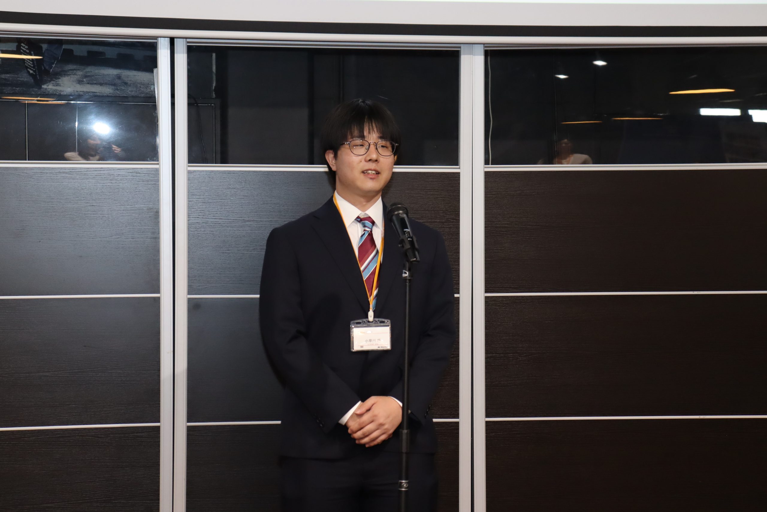 次に、最終面接を担当した役員 宮本からお祝いの言葉と内定者みなさんへの期待が語られました。