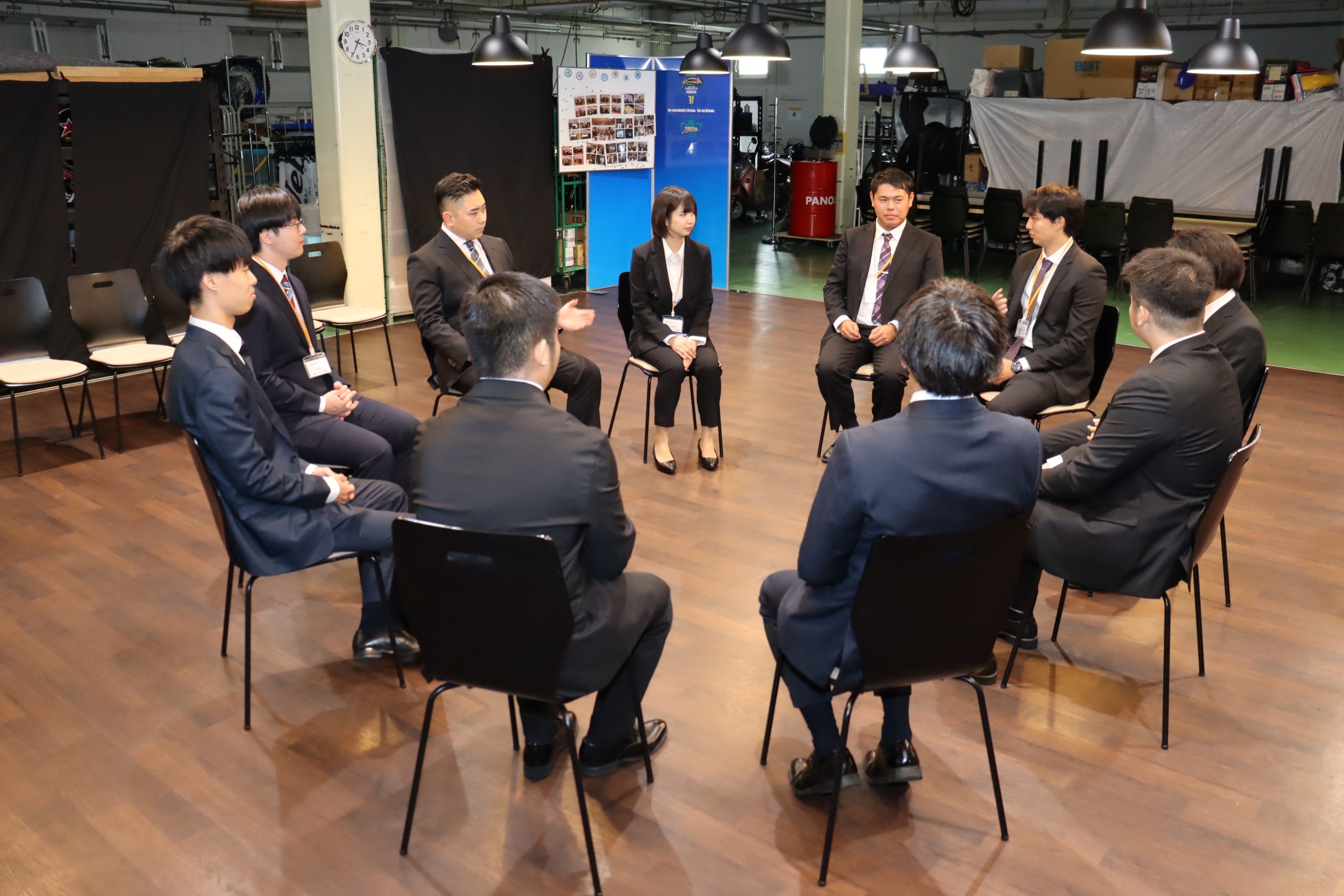 内定者のみなさんが引き締まった面持ちで話を聞く姿が印象的でした。