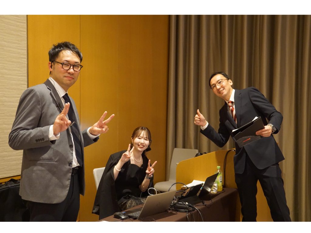 4時間にわたる社員総会でしたが、実は司会、スライド進行、音響、照明、撮影、バックボードのデザイン・・そのほとんどを社員で行っています。