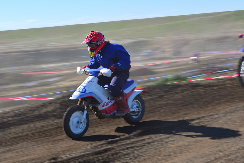梅津ジュニアは慣れないギア付バイクの中、キッズクラス5人の中で1位-2位を争う白熱した展開を見せる。