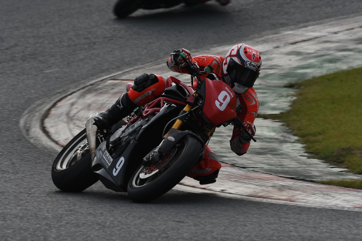 日曜日開催のF-ZEROクラスには、これまで同クラスに参戦し続けていた神選手からバイクを引き継ぎ、熊谷選手がMVアグスタのBRUTALE1090RRで初参戦。練習ではマシンに中々アジャストできず苦戦していましたが、試行錯誤を繰り返しながら徐々に手ごたえを掴んでいきました。その成果もあり、予選ではこれまで出せなかった1分0秒台をマークし6番手。決勝レースは2列目からのスタートとなりました。