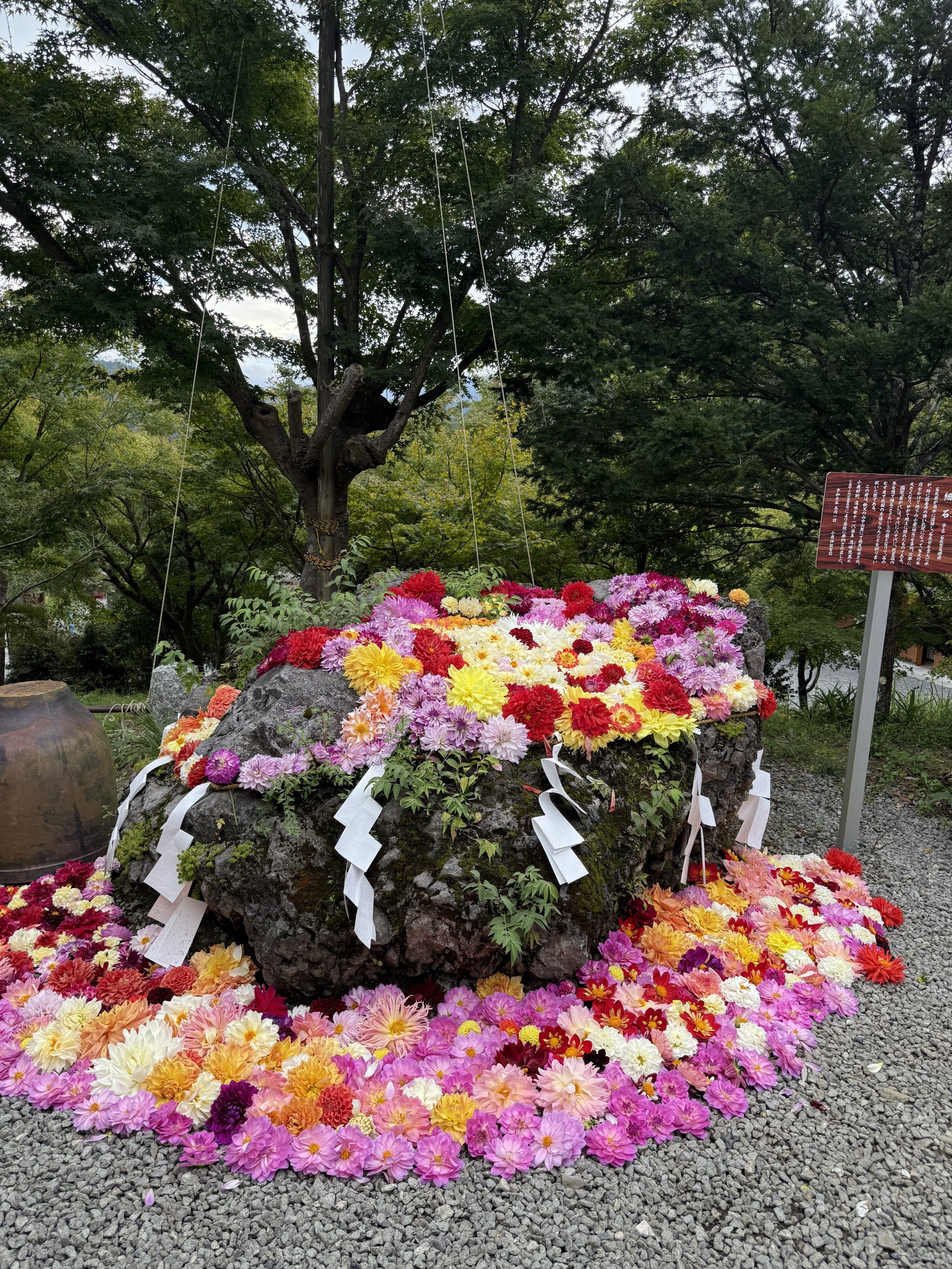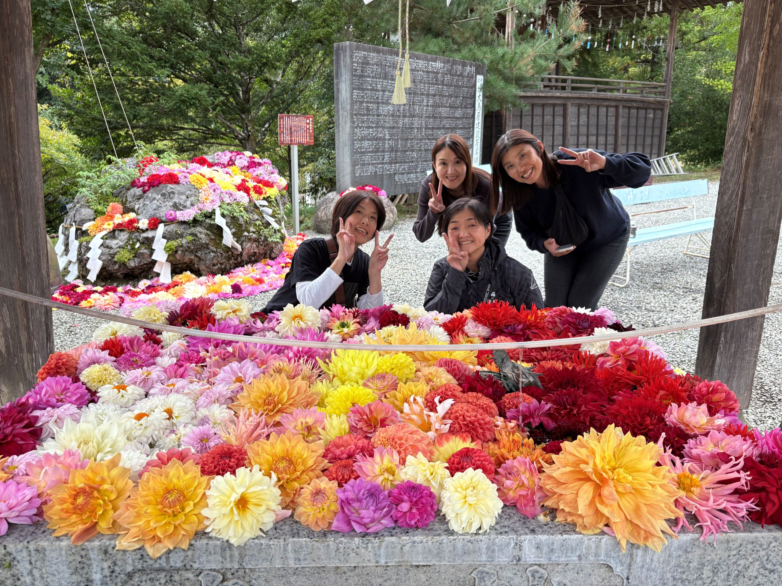 「ダリアの花手水」という催しで神社近くのダリア園で咲いていたものだそうです。