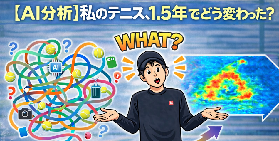 自分の主観(フィーリング)だけで語っていた試行錯誤が、AIの視点を通すことで「技術変遷のデータ」としてどう可視化されるのか。軟式テニス経験者が硬式テニスにアジャストしていく過程の「正解」と「迷走」が浮き彫りになった、興味深いレポートをお届けします。