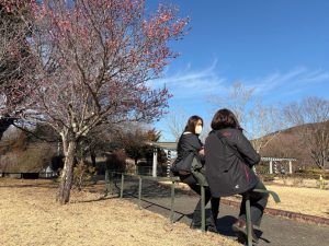 広場の奥には梅の花がキレイに咲いていました!