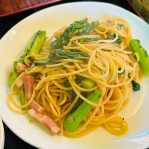 みんなはカフェメニューのなか、私だけがスパゲッティを食べました。