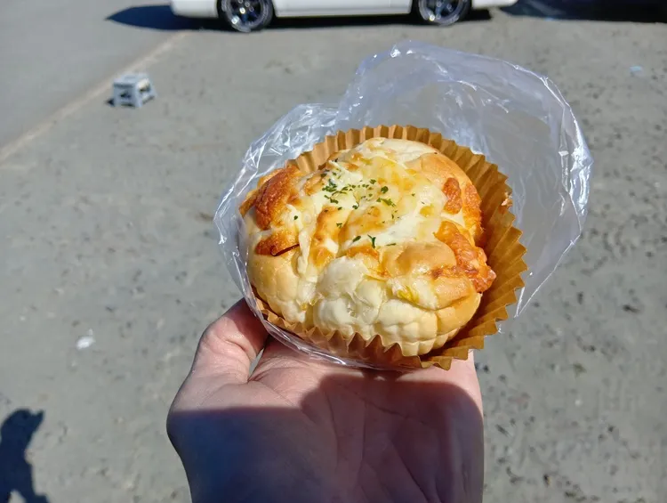 玉ねぎパンを食べながら、路面コンディションを確認します。