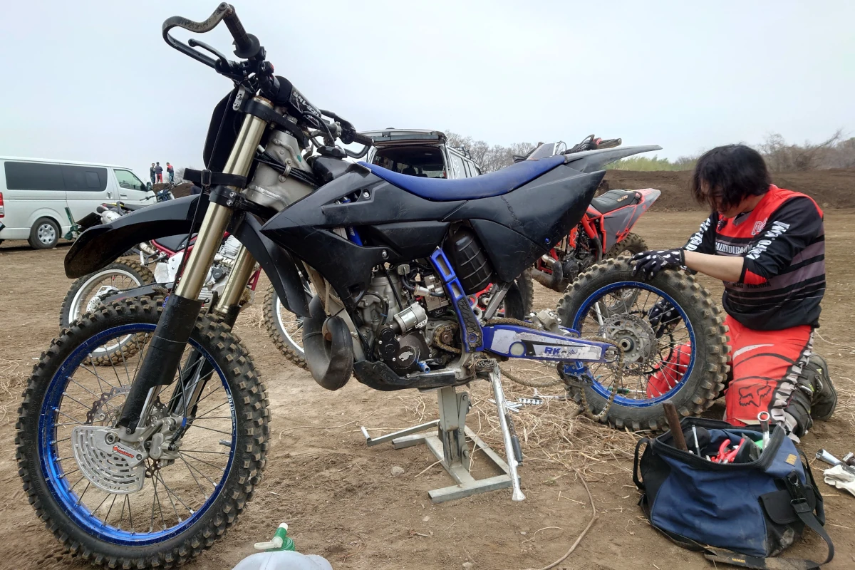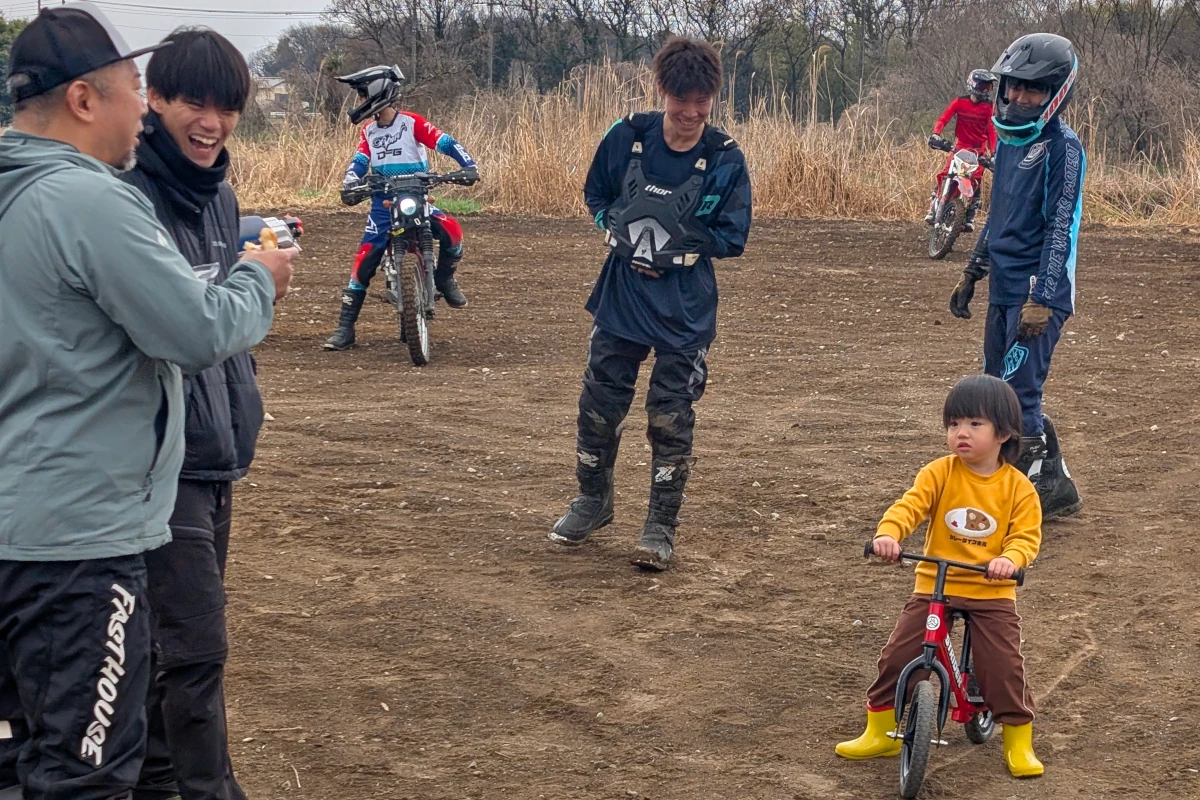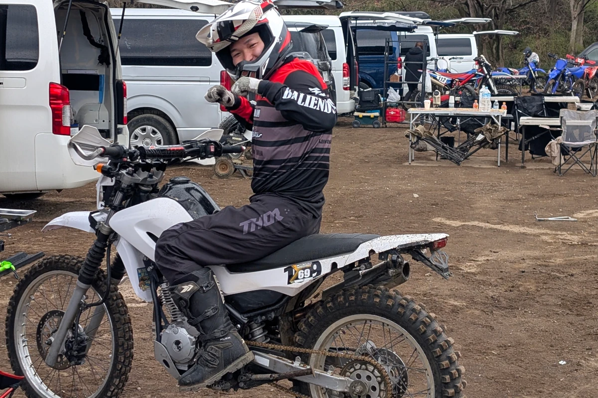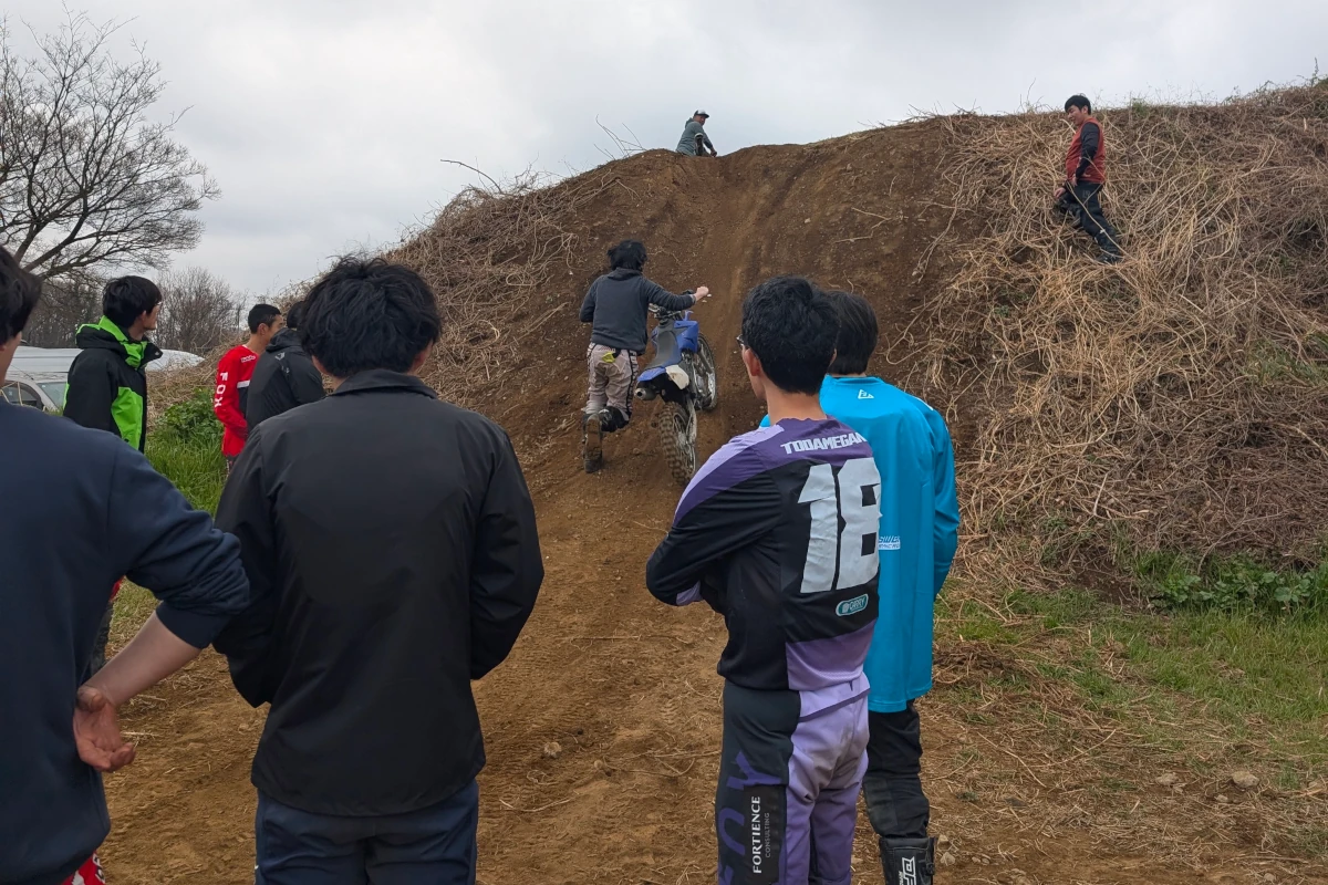 オフロード競技には「エンデューロ」という種類がありますが、これは自然の地形を活かした山林や林道などの未舗装路を長時間をかけて走破する競技。実際、坂道でバイクを手押しするなんてザラで、極限状態に陥ったライダーの体力や耐久力が試されます。それを模擬的にモトクロスコースでやってみたわけです。これが実は一番盛り上がっていたのですが、そんな単純な遊びでも十分楽しめるのって素敵ですよね。