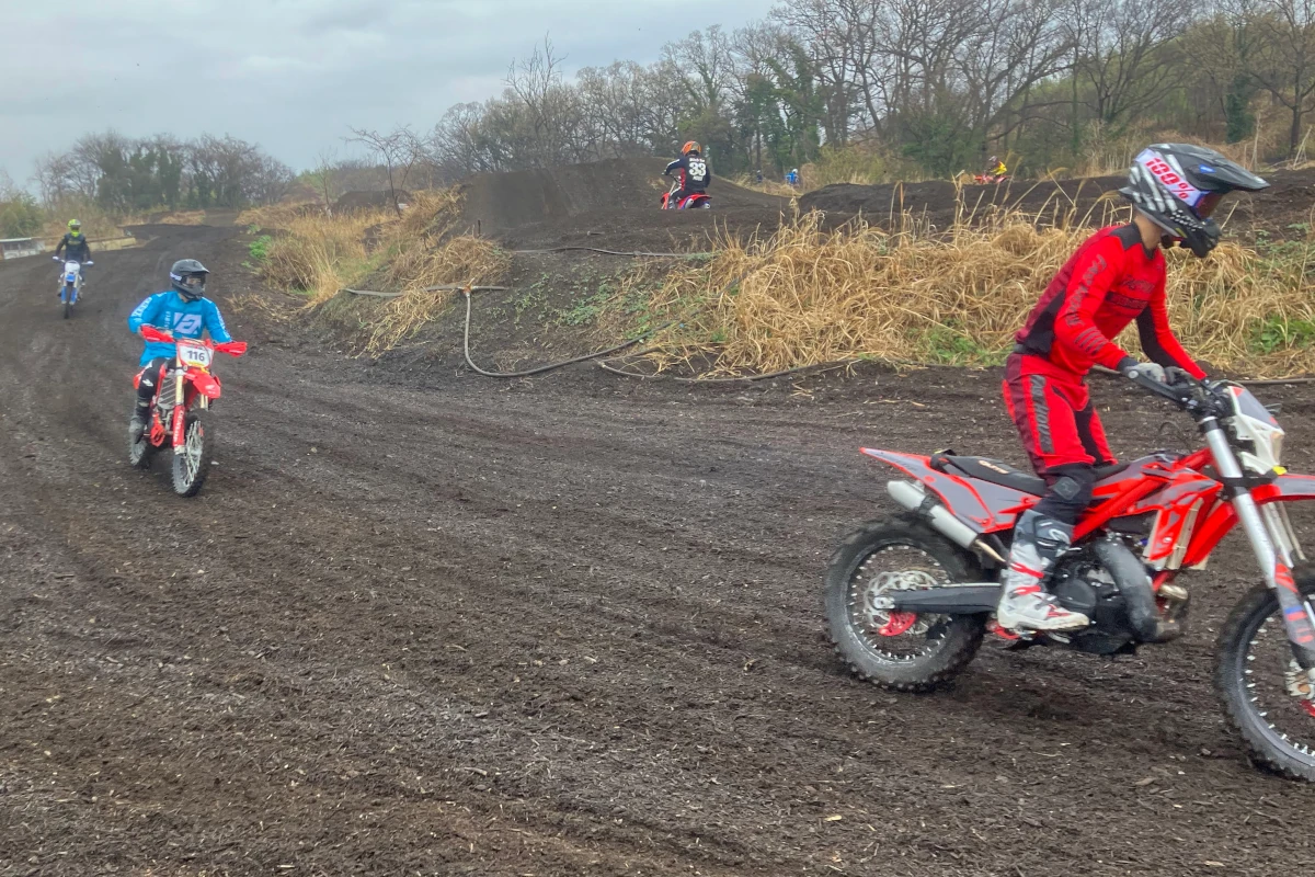 皆さんそれぞれコースを堪能し、すっかり土遊びに夢中! コースでスライドしたり、大ジャンプを決めてみたり、時にズッコケたりと自由気ままに走り回り、コース中がエンジン音と砂煙と排気ガスの香りに包まれます。筆者はオフロードが好きになってまだ日が浅いのですが、この雰囲気はオフロードコースでないと味わえないと思います。