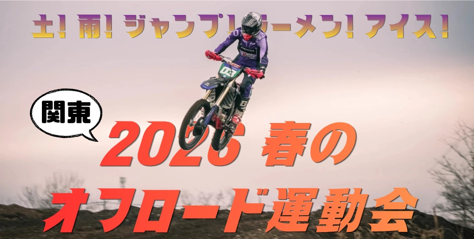 2026年3月20日(金)、リバークレイン恒例の「オフロード運動会」が関東組・関西組と同日開催! 玄人はもちろん、初心者・未経験者も大歓迎の同イベント。関西組のブログも是非ご覧いただき、関東組との違いを感じてみてください! ちなみに筆者はドが付くくらいのオフロード初心者ですが、ブログの最後に華麗なジャンプを披露しますので、是非最後までご覧ください。※アイキャッチの華麗すぎるジャンプは筆者ではありません。