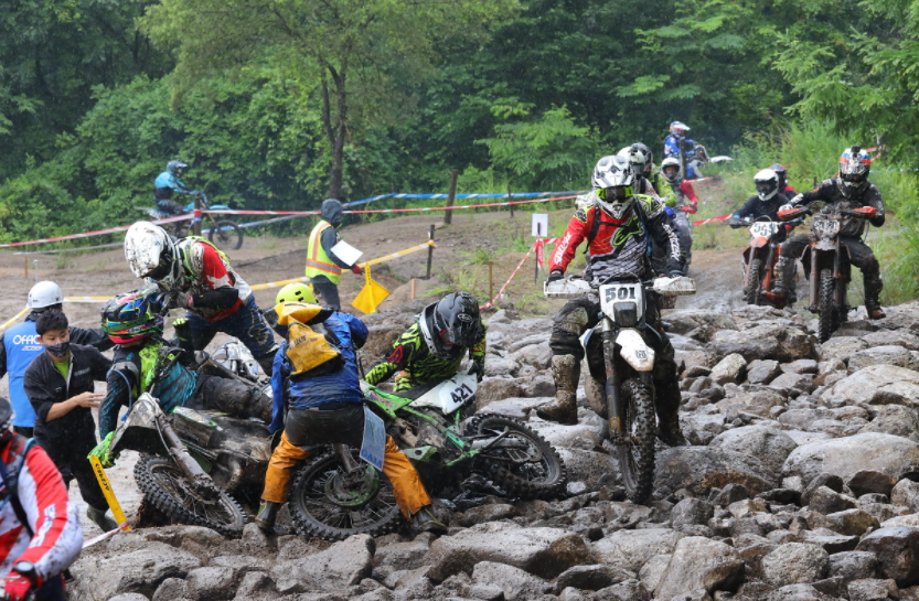 モトクロスコースも泥だらけでしたが、GAIA名物のウッズセクション「ジュラシックパーク」の泥がライダー達を一層苦しめました。