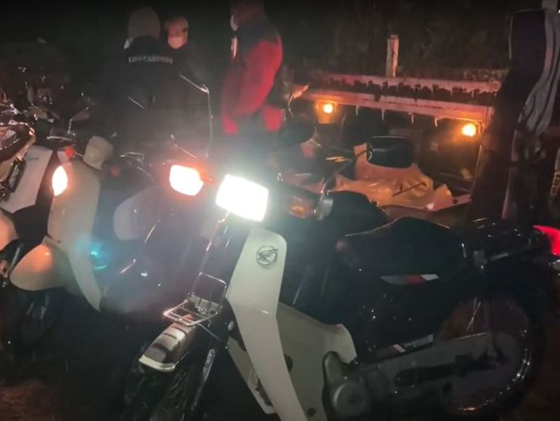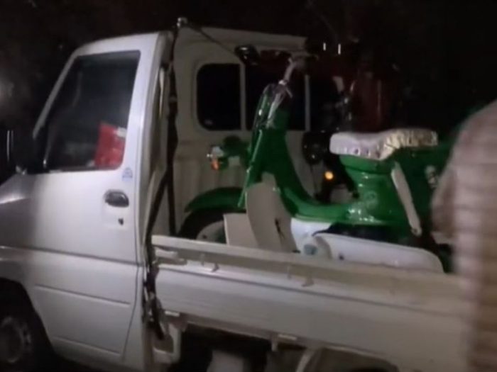 ヘッドライトを灯しているトラックの荷台に目を凝らしてカブを探します。