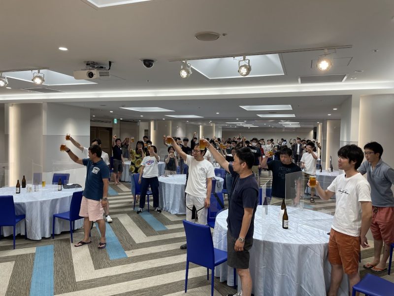 1日目の夜に懇親会を開催。全社員が集まり部署関係なくコミュニケーションを図ることができ、とても良い機会となりました。