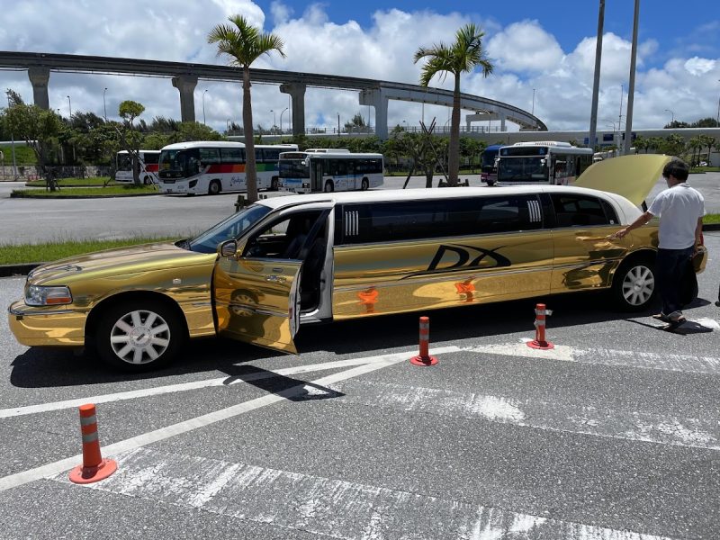 「沖縄では有名なのでしょうか……金色のリムジンで送迎してくれるレンタカー屋がありました。」