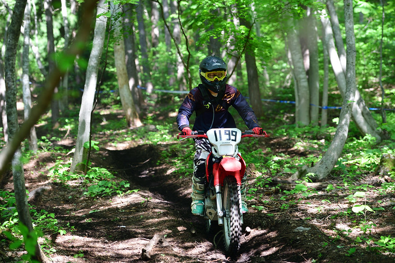 レース本番は、ゲレンデの急斜面に市販車ではとても苦戦しましたが、XR230の持ち前の低速トルクと、縄跳びで鍛えた脚力でウッズをなんとか攻めることができました。